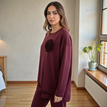 maglia in felpa linee morbide più lunga sul retro aggiunta di un ricamo tipo fiore...