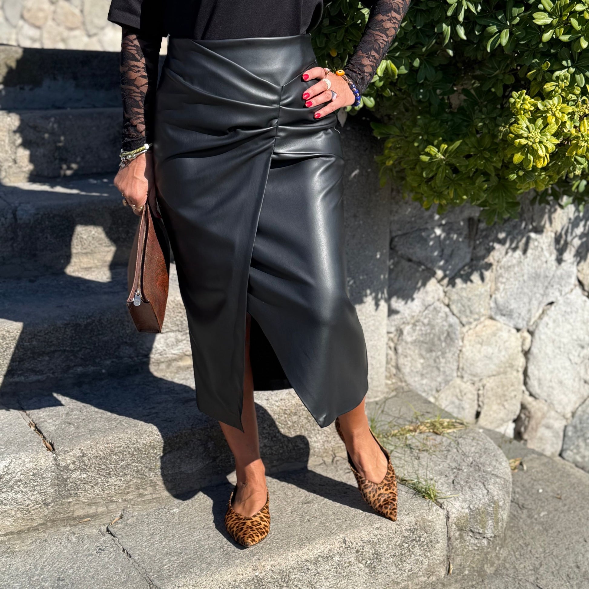 - gonna in similpelle con spacco frontale