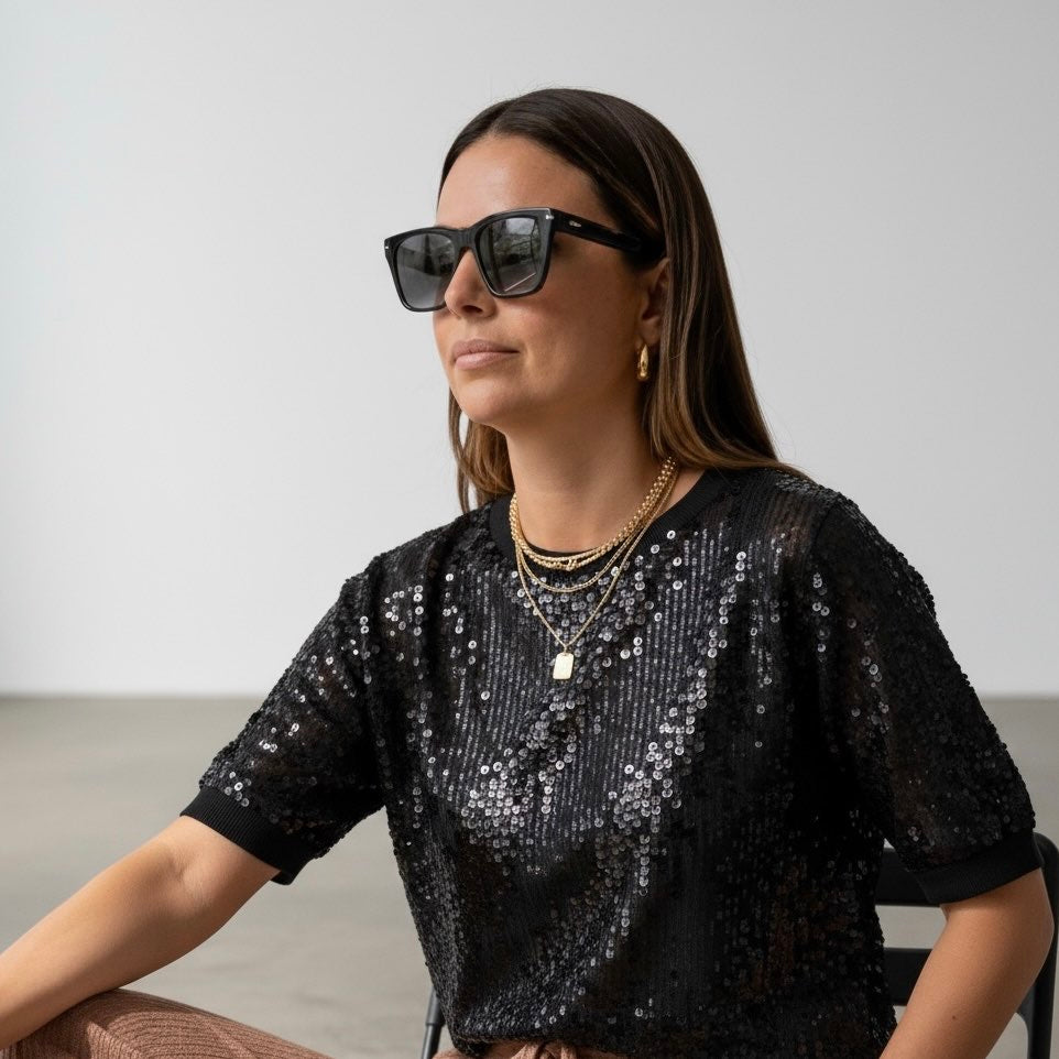 - maglia mezza manica con paillettes è il mix perfetto tra eleganza e luce