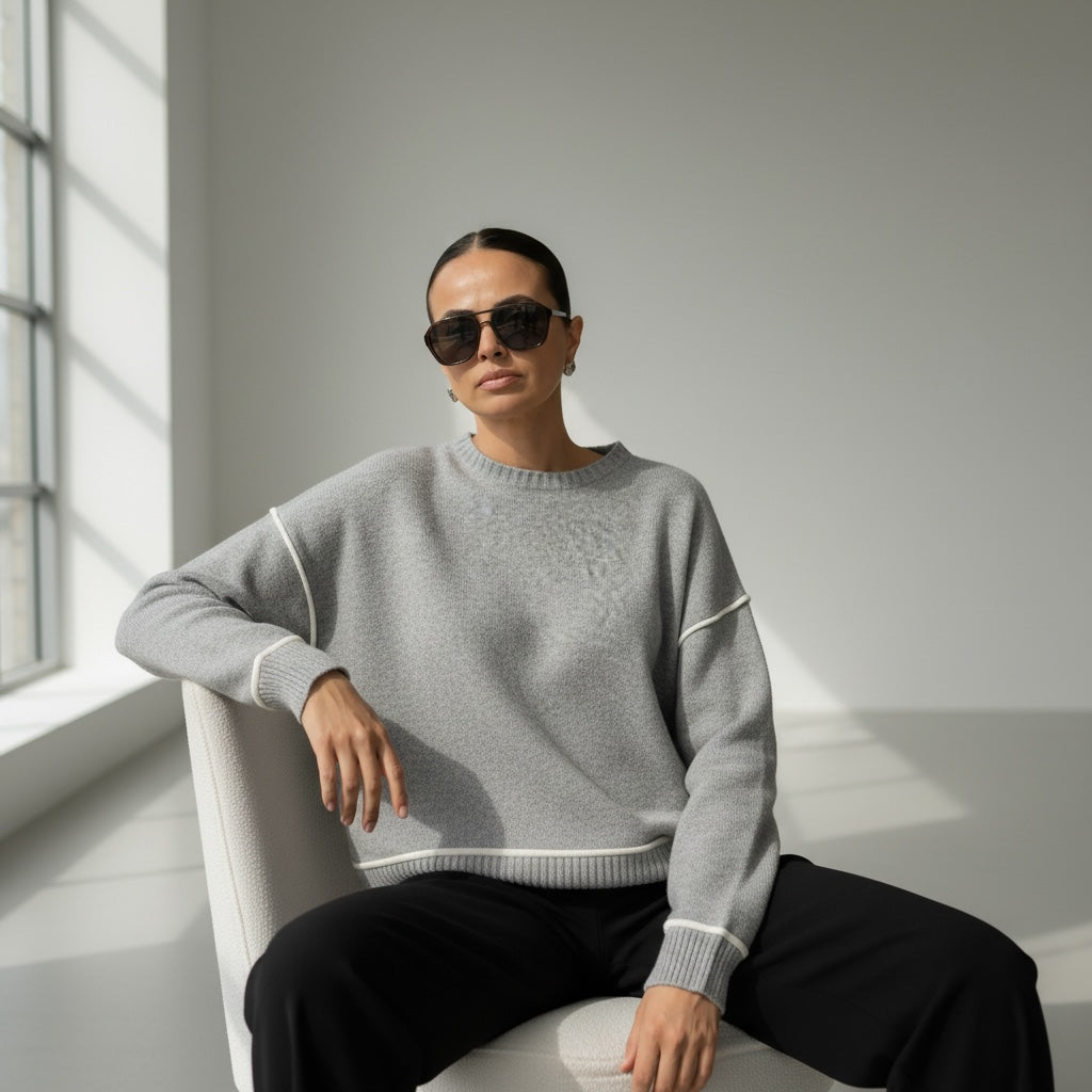 - questa maglia grigia con inserti panna